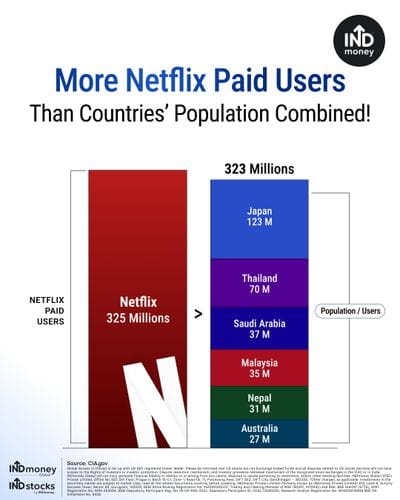 Netflix is one of those rare businesses where sheer scale stops you in your tracks. Today it boasts a market cap larger than legendary media giants such as Walt Disney and Sony combined. Its over 325 million paid users globally exceed the populations of entire countries like Japan and Thailand. Its annual profits dwarf the combined revenues of India’s listed media companies. And its market value tops the GDP of nations such as Sri Lanka, Nepal and Iceland combined together.