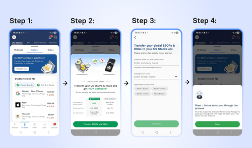 - 100% refund - On any transfer fee levied by your broker who holds your RSU’s/ ESOPs